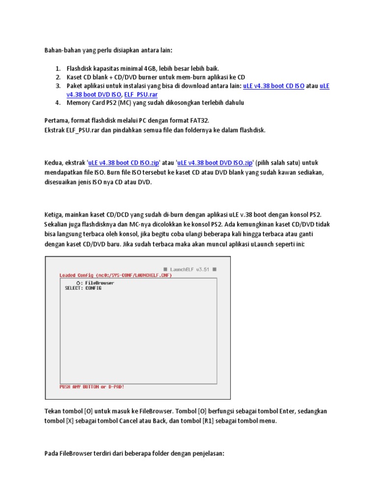 Install freemc boot berhasil dilakukan tanpa cd ulaunch.elf. Cara dibawah ini bisa kita lakukan apabila kita malas utk mengcopy ulaunchelf ke cd/dvd atau dvd ps2 kita sudah tidak bisa membaca cd/dvd lagi. Stelah layar nyala, lalu muncul tampilan matrix, tekan r1 utk masuk menu ulaunch. Nah sekarang tingggal masukin game nya ke dalam flashdisk gini caranya gan.download. Ulaunchelf merupakan program yang jalan di ps2 yang berguna untuk manajemen file di ps2 seperti copy, paste, rename cara menginstal dan menggunakan ulaunchelf ada beberapa cara diantaranya: